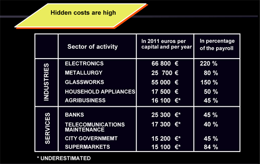 | Example of hidden costs extracted from 2000 cases of companies and organizations (72 sectors) |